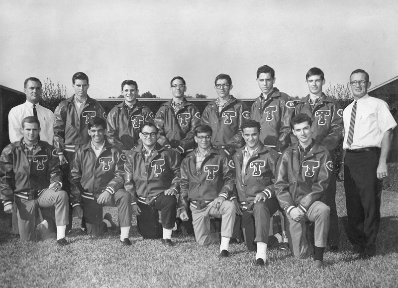 Back: Coach Robert St. Julien, Rick McDowell, Clifford Guillory, Mike Harson, Jerry Johnson, Rocky Romero, Ernie Gremillion, Coach Paul Broussard
