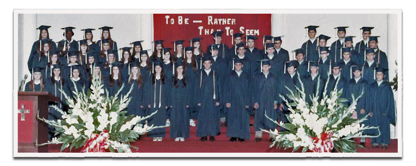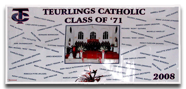 GRADUATESKarl Alleman Michelle Angelle Elizabeth Begnaud James Benezech Janice Benezech Bernard Bonnecaze Judy Boudreaux (Robichaux) Mary Brazda (Halderman) Thomas Breaux Charlene Broussard (Mouton) Guy Camel Lana Camille (Trahan) Marguerite "Margo" Comeaux Claire Dauterive Gregory DuCote Edmond "Eddie" Dugas David Duhon Michael Dupuis Linda Dwyer (Landry) Eric Estilette Pamela Foley (Gaudin) Nancy Fuselier (Duhon) Douglas Greig Darrell Guidry Connie Guidry (Harper) Rickey Guthrie Mary Paula Hutchinson (Smith) Mike Jeanis Constance "Connie" Koury Bonnie Landry (Redifer) Laura Landry (Singletary) Marcus Landry Kathy Latiolais (Thomas) Marie Lejeune (Strong) Rebecca Menard Majorie Munro (Brooks) Pam Nelson (Gravouia) Lila Paul Charles R. Perry Carmen Pierret (Perkins) Rebecca Ann Pitre (Wilson) Gary Proctor Floyd Robichaux Shannon Sonnier (Doucet) Paulette Stout (Lupo) Walter Stubbs Clifford Tanner Steven Taylor Terry Thibodeaux Paul Michael "Mike" Trahan Robley Trahan, Jr. Earl Womack Karl Zaunbrecher Delores Zimmerman