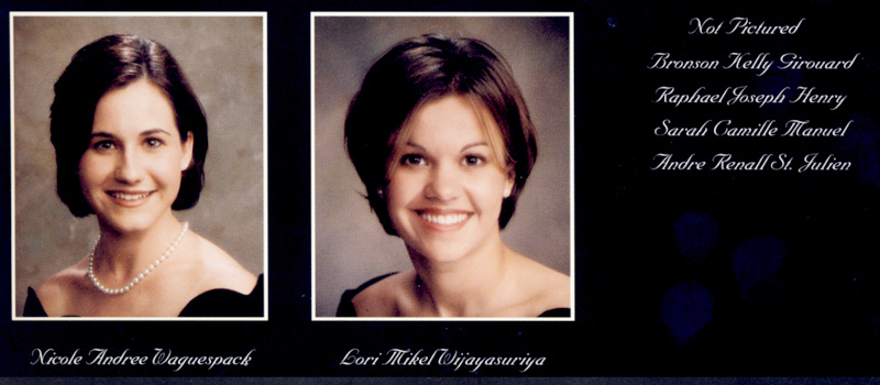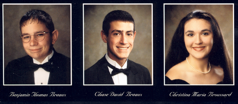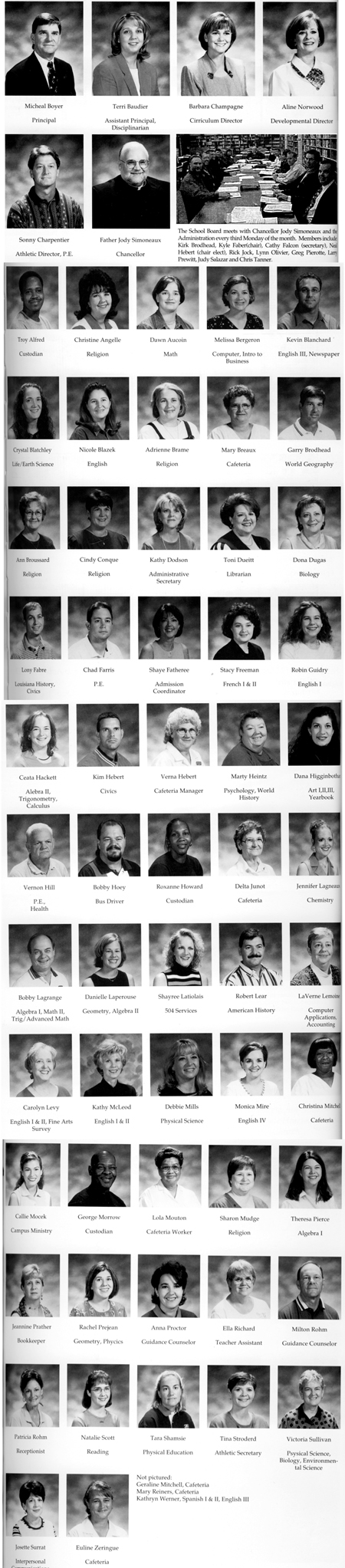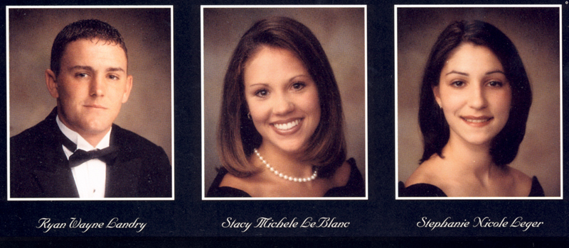 GRADUATES - Last class of the 20th CenturyTimothy Ross Armentor Heather Shaye Arnold Tara Elizabeth Aucoin Rachael Alexis Babin Shellie Lynn Badon Danielle Alyce Blanchet Benjamin Thomas Breaux Chase David Breaux Christian Maria Broussard Joshua Vaughn Cain Claire Renee Calais Sadie Ann Camel Adam Christopher Caro Sarah Eleanor Carroll Brandi Nicole Champagne Jayme Sue Christensen Erika Michelle Comeaux Tiffany Louise Cooper Chad Abraham Cormier Emily Claire Couvillion Amy Catherine Craft Hannah Sherrie Cross Carrie Elizabeth Dauphin Yvette Angelle David Daniel John Delahoussaye Steven Matthew Domingue Ryan Paul Ducote Jency Jenee Dueitt Andrea Nicole Duhon Anna Claire Duhon Travis George Durling Matthew James Fontenot Richard Kyle Fournet Virginia Elizabeth Fuselier Joshua Paul Gary Daniel Charles Gautreaux Bronson Kelly Girouard Christopher August Gisclair Victoria Alexandria Gomez Brandy Nicole Granger Brandon Michael Greenman Chad Michael Guerin Ashley Marie Guidry Lindsay Leigh Guilbeau David Lee Guillory Justin Paul Guy Raphael Joseph Henry Justin Daniel Herpin Kyle James Hoey Jennifer Lyn Hollier Rachelle Lynn Hulin Shelly Antonia Jett Ashley Nicole Jolie Michael Lee Judice Patrick Michael Junot, Jr. Jerad Paul Kehrer Leslie Ann Lalonde Kevin Philip Landry Lindsay Marie Landry Ryan Wayne Landry Stacy Michele LeBlanc (Hebert) Stephanie Nicole Leger Jeremiah Lormand Rachel Melina Louis Joshua Jude Louviere Jennifer Ann Luke Sarah Camille Manuel Vance Michael McBroom Sharee Danielle Menard Stephanie Ann Milligan Ryan Vincent Mouton Jason Levi Myers Steven James Olivier Tiffany Louise Olivier Kristy Ann Pearson Bradley Lionel Pecot Robert Paul Picard Masharika Sims Prejean Natalie Adele Reed Joseph Ross Rials April Leigh Romero Christopher Glyn Rood Jered Abel Salazar Antonio Ramon Sanfilippo Brandi Nicole Savoie Kristy Elizabeth Savoie Mary Margaret Schexnayder Kellie Michelle Schneider Lacey Nicole Shelton Andre Renall St. Julien Justin Paul Stroderd Alexis Lynn Thibodeaux Kimberly Monique Thibodeaux Shawn Blake Thomas Nicole Andree Waguespack Lorie Mikel Wijayasuriya If you would like your email address listed, contact us at feedback@tchs.net |