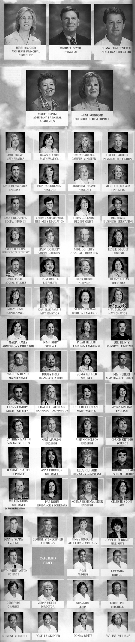GRADUATESLyndsay Albarado Lauren Alexander (Wojic) Stacey Allen Andrew Angelle Kayla Angelle (Lanclos) Ashley Antoine Luke Aubrey, III Jeremy August David Bandy, II Matthew Begnaud Gabriel Begnaud Nieka Bell Joel Billeaud Sheree Blanchard Jill Bonar Laure Bordelon Mary Christina Boss Channing Boudreaux Dustin Boudreaux Kyle Boudreaux Virginia Bowen Jordan Brasseaux Dustin Breaux Melissa Breaux Blair Brodhead Christopher Broussard Lacey Broussard Rachele Bruno Chelsea Cade Kristen Call Chase Cambre Brittney Cardon Joseph Carle Kells Castille Andrea Champagne Laura Citron Jared Conques John Bryce Darnall April Darrow Whitney Dawes Sara Dean Samantha Debevec Mark Decoux Dane Delahoussaye Brad Delcambre Nicholas Domingue Thomas Domingue Amber Doré Dustin Dought Brook Dubose Jett Dueitt Colin Duhon Rachael Dupré Stacie Dupuis Jeffrey Faber Leah Faciane Anna Forester York Forsyth Jenson Schuyler Foti Ross Frederick Bryon Gerard Fuselier, Jr. Camille Gauthier Nicholas Gisclair Brittany Goodly Mary Katherine Griffith Joshua Guidry Justin Guidry Amber Hebert Jake Hebert Jordan Hebert Ke'Oaklann James John Jordan, Jr. Armand Kopfler Pedro Lages Luke Landry Kristi Latiolais (LeBlanc) Amanda LeBlanc Arthur LeBlanc Jason LeBlanc Elizabeth Leday Chelsea Link Brittany Litchfield Bridget Lowry Philip André Martin, Jr. Kendrick Matthews Michael "Mitch" McElderry, Jr. Todd McManus Daniel Miller Taborous Montgomery Jacob Moseley Frankie Mouton Martin Mouton Aaron Naquin Colby Nelams Chase Olivier Robert O'Meara Garrett Pavy Madeline Pena Tyler Pierret Harold Register, III Tyler James Richardson Cole Ruckstuhl Jacob Salas Daniel Saucier Jeanne Savoie Chad Songy Klaire Soulier Jack Stagg, III Jeffrey Stelly Charles Strong Clara Sylvester Justin Sylvester Jacob Tabor Jade Thibodeaux Jason Thibodeaux Lori Thibodeaux Amber Trahan Kristin Ventress Jeffery Vidacovich Jared Vidrine Lyndsey Vizina Lacey Tizzy Walker Hanna Wildbur Derek Wiltz Troy Young, Jr. Maura Zeik