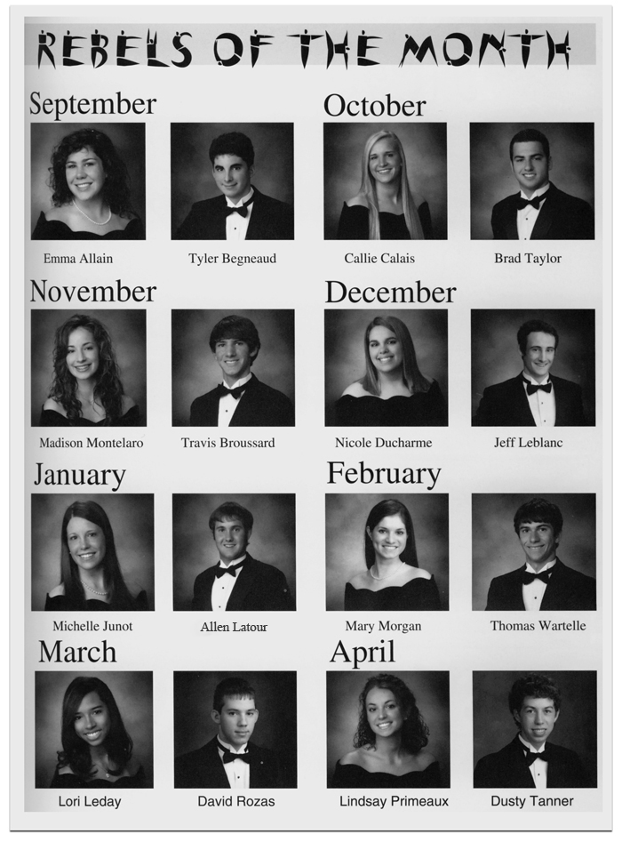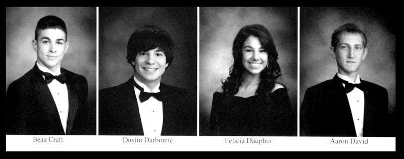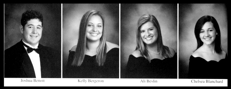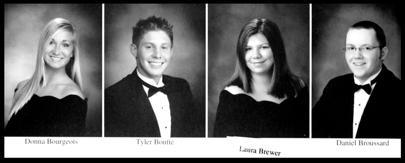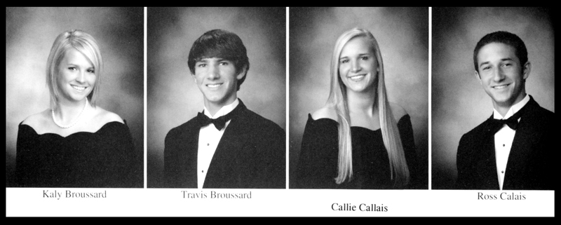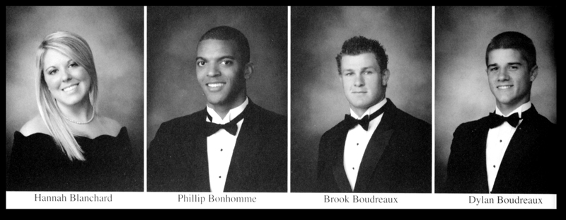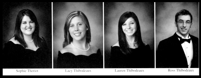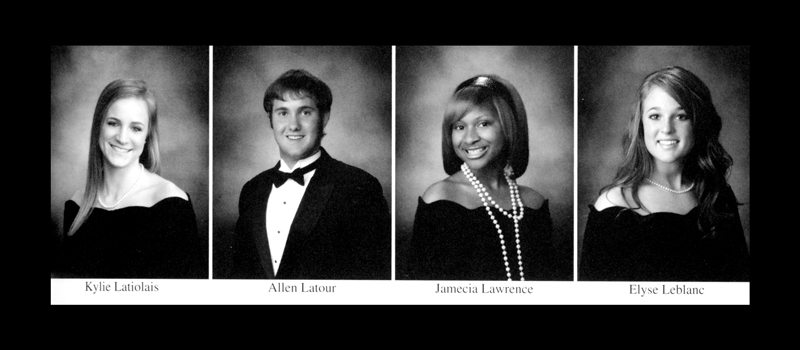 GRADUATESEmma Allain Billy Allen Tyler Anderson Heather Andrew Jill Angelle Alex Ardoin Andrew Arton Meagan Aucoin Jady Bacque Blaire Bajat Kathryn Barry Chris Bartlett Shanna Batiste John Beasley Tyler Begneaud Lyndra Bell Joshua Benoit Kelly Bergeron Ali Beslin Chelsea Blanchard Hannah Blanchard Phillip Bonhomme, Jr. Brook Boudreaux Dylan Boudreaux Donna Bourgeois Tyler Boutte Laura Brewer Daniel Broussard Kaly Broussard Travis Broussard Alysse Caillier Ross Calais Ryan Calais Ryi Calais Callie Callais Alex Cambell Amber Camel (Guilbeau) Justin Cantu Destinie Carroll Maggie Castille Jeff Cecil Brittany Clement Marshall Collins Seth Comeaux Paige Cormier Sean Cormier Beau Craft Dustin Darbonne Felicia Dauphin Aaron David Matt David Rachel Decoux George Diggs, III Scott Domingue Colin Domingues Lindsay Dooley Chelsea Doré Nicole Ducharme Jennifer Dupré André Dupuis Andrew Dupuis Lee Dupuis Maggie Durio Alana Ebersole Amie Falcon Aubrey Faugot Maggie Fisher Alex Fitzgerald Brittany Floyd Joshua Fontenot Phillip Ford, Jr. Hunter Fuselier Emily Gahn Michael Gauthier Eddie Gautreau, III Brina George Sarah Goodness Mandy Granger Megan Granger Morgan Grossie Chase Guidry Amy Guilbeau K-Kay Guillory Kyle Harmon Sadie Hash Amber Hayes Adrienne Hebert Britney Hebert Erica Hebert Kristin Hebert Mitch Heim Allyson Hollier Ainslee Hulin Marcy Jock D'Yonne Jones Janseé Jones Ginnie Joubert Michelle Junot Dusty LaFleur Megan LaLanne Dez Landry Lauren Landry Jason Lantier Lauren Lasley Kylie Latiolais Allen Latour Jamecia Lawrence Elyse LeBlanc Jeff LeBlanc Lori Leday Matt Leger Mariya Lemaire Desiree Lemaire Jontel Lewis Liz Livingston Allie Mahfouz Nicole Malveaux Samantha Marks Andy Martin Dayton Marze Ben McConnell Brennen McCullough Josh McGrew Toni Menard Randy Miller Madison Montelaro Mary Morgan Jeremy Morrison Chelsea Mouisset Terrence Mouton Eugene Murray, III James Naquin Jenny Nelson Nelson Newman Van Nguyen Jacob Olivier Spencer Ortego Trey Patin Mitchell Pearce Sam Plauché Krista Pontiff Lindsay Primeaux Sarah Quebedeaux Jimmy Richard, III Elizabeth Robichaux Brittany Robicheaux Derek Robin Blanche Rochon Trevor Roy David Rozas Robin Sam Ray Savoie Jonathan Serrette Kathryn Souther Allison Stroderd Dustin Tanner Brad Taylor Jess Taylor Cody Thayer Sophie Theriot Lacey Thibodeaux Lauren Thibodeaux Ross Thibodeaux A. J. Toce, Jr. Kayle Ventress Cassie Viator Kristin Viator Greg Vizina Claire Walley Thomas Wartelle John-David Withers, Jr. Matthew Zaunbrecher