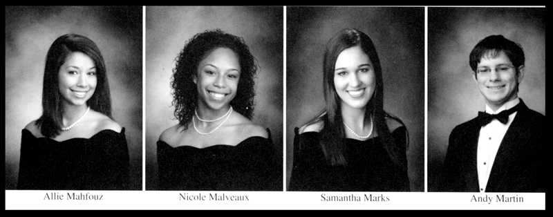 Top Honor Graduates: Heather Andrew, Kathryn Barry, Destinie Carroll, Seth Comeaux, Amie Falcon, Michelle Junot, Allen Latour, Randy Miller