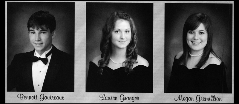 GRADUATESKathryn Abadie Lauren Acosta Alex Angelle Ariana Angelle Christina Angelle Simone Angelle Tré Angelle Rebecca Ashy Monique Babineaux Simone Babineaux Eric Ball Daniel Bates André Benoit Drew Bergeron Lauren Blanchard Nichole Blanchard Camille Bordelon Chris Bordelon Hall Boss Bo Boudreaux Jayme Boudreaux Ryan Boudreaux Simone Boudreaux Jordan Bourque Chris Breaux Kyle Breaux Shayne Breaux Daniel Broussard Jacob Broussard Jordan Broussard Kelsey Broussard Emily Clause Torey Collette Emily Comeaux Hans Constantine Trey Cormier Danielle Cottonham Caroline Courville Miles Daigle Katie Daly Ian Darby Jenson Darby Garret Dauphin Kirby Davis Derek Delcambre Alex Dooley Calli Dugas Taylor Dugas Taylor Duhon Brittany Durand Blake Flugence Mary Fontenot Hunter Foret Emily Fortier Alex Fuselier Lexi Fuselier Sean Gary Bennett Gautreaux Lauren Granger Megan Gremillion Blake Guidry Hunter Guidry Chase Guilbeau Amber Guillory Leslie Guillory Bo Hammett Tyler Harbourt Kara Harrington Mike Harris Kodi Haydel Paxton Haydel Austin Hebert Danielle Hebert Elliot Hebert Mary Hebert Michael Hebert Sarah Houton Sam Hudi Blair Hulin Eric Iorio Andrew Jeanmard Krissy Ketelers Kelly Krantz Bryant Labbie Brae LaLonde Adam Landry Brittany Landry Gavin Lastrapes Arielle Latiolais Kristin Latiolais Ashton LeBlanc Lauren LeBlanc Teri LeBlanc Kristy LeCompte Keri Legé Hanna LeMaire Garrett Maxwell Greg McZeal Andraé Melancon Taylor Melancon Kelsie Menard Bryson Mestayer Adam Miller Jordan Miller Kelli Miller Trey Miller Elise Morrison Joey Morrison Kinzee Morvant Michael Moseley Blake Mouton Chase Mouton Elizabeth Mouton Blake Naquin Michael Naquin Kyle Nelams Nghia Nguyen Keith Ozene Caitlin Papa Daniel Patin Todd Patin Ethan Peltier Kathryn Peltier Seth Peirret Austin Proctor Jordan Ray Nick Rees Suzanne Rees Lindsey Richard Nick Richard Derek Robichaux Ali Robin Ryan Robin Alex Savely Brooks Savoie Michelle Scelfo Kelsie Smith Rebecca Soileau Glenn Stephen Travis Tabor Bannon Tanner Dane Taylor Drew Thibodeaux Peter Thibodeaux Tyler Thibodeaux Casey Trahan Matt Trahan Tyler Ventress Colby Vidrine Allie Warren Brooke Webb