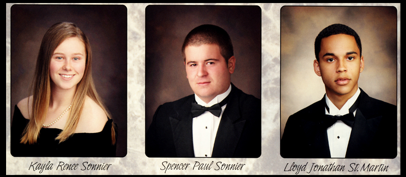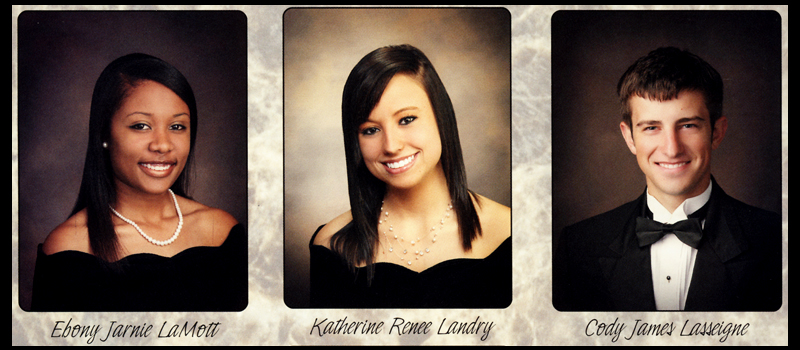 GRADUATESJean-Paul Abshire Robert Allain, III Leah Amos Allyce Andrew Lauren Andrus Kelsey Angelle Kelsea Anzalone Christopher Ardoin Mathew Ardoin Lauren Ashy Trent Bajat Jake Barber Elizabeth Bates Lindsey Baudoin Brooke Benton Aaron Berkenmeier Erin Billeaud Jacques Billeaud Alaina Blackwell Lacey Boleyn Benjamin Boudreaux Cassie Boudreaux Chance Boudreaux Lance Boudreaux Lucas Bruno, II Rachel Bundrick Brittany Cade Spencer Caffey Claire Caillier Kyle Calais Mark Cavanaugh Ross Champagne Bryce Chapman Michael Collado Britt Collette Trent Collette Dillon Comb Mark Anthony Conque Ethan Conques Troy Cormier Aaron Courville André Courville Kristin Daniel Victoria Dauphin Andrew Degeytair Shannon Delahoussaye Chelsie Diaz Samantha Doré Gerard Ducharme Zachery Ducote Taylor Dugas Lauren Durand Phillip Fisher Logan Frazier Ashleigh Frugé John Gil, II Jake Gravouia Dustin Green Elizabeth Greenman Daniel Guidry Emily Guidry Alexander Hatout Alaina Hebert Andrew Hebert Joshua Hebert Holli Hritz Ieasha James Paige Johnson Leah Judice Imeri Kelly Jordan Kennerson Mitchell LaGrange Ebony LaMott Katherine Landry Cody Lasseigne Matthew Latiolais Stevi Latiolais Tori Latiolais Bethany LaVergne Mary LeBlanc Selleck LeBlanc Victoria Leger Mary (Alexis) Lormand Jourdan Louis Jeanne-Elise Lucie Chase Lyons Whitley Madden Garrett Madson Gregory Maher Alyssa Mankin Kay Manuel Kourtneii Martin Qyenton McConnell Myles Melancon Kaci Menard Jude Miller Morgan Miller Rebecca Miller Victoria Miller Scott Miller, Jr. Aaron Morgan Brittany Morvant Jacob Murphy Emmanuel Noel Anne Oubre Christopher "Brent" Owens, Jr. Taylor Papion Katie Pierrottie Renee Poché Elizabeth Pollard Julia Pollard Katie Pucheu-Morvant Blake Quebedeaux Chase Richard Gage Richard Jeremi Richey Holden Robichaux Kayan Robicheaux Dillon Robin Martha Roy Kaitlyn Sam Leilani Sampia Porter Courtney Sarver Bridget Savoie Gabrielle Savoie Rick Schenck, Jr. Candi Schexnayder Ashley Simoneaux Gannon Sonnier Kayla Sonnier Spencer Sonnier Lloyd St. Martin Nicholas Stelly Courtney Thibodeaux Hannah Thibodeaux Katherine Thibodeaux Misti Thibodeaux Robert Thibodeaux Steven Thomas Brittany Thousand Ashley Trahan Broc Trahan Christopher Venable Ashton Vilcan Jessica Villejoin Christopher Vincent Angelina Wagnon John Wartelle Joshua Washington Joseph Kyle White Michael Travis White Landon Wickstrom Jillian Willis Chase Wooley Dannyn Zerangue
